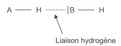 Pour que ces liaisons puissent s‘établir, les atomes doivent être proches. On les représente par un trait pointillé comme ci-dessous.