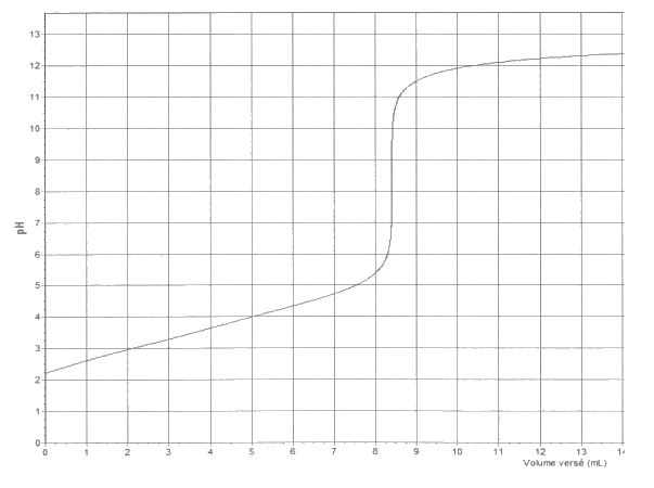 La courbe d‘évolution du pH en fonction du volume de solution versé est donnée ci-dessous