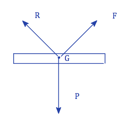 D'après le principe d'inertie | \(\displaystyle\mathrm{ \vec{P} + \vec{R} + \vec{F} = \vec{0} } \) | ||